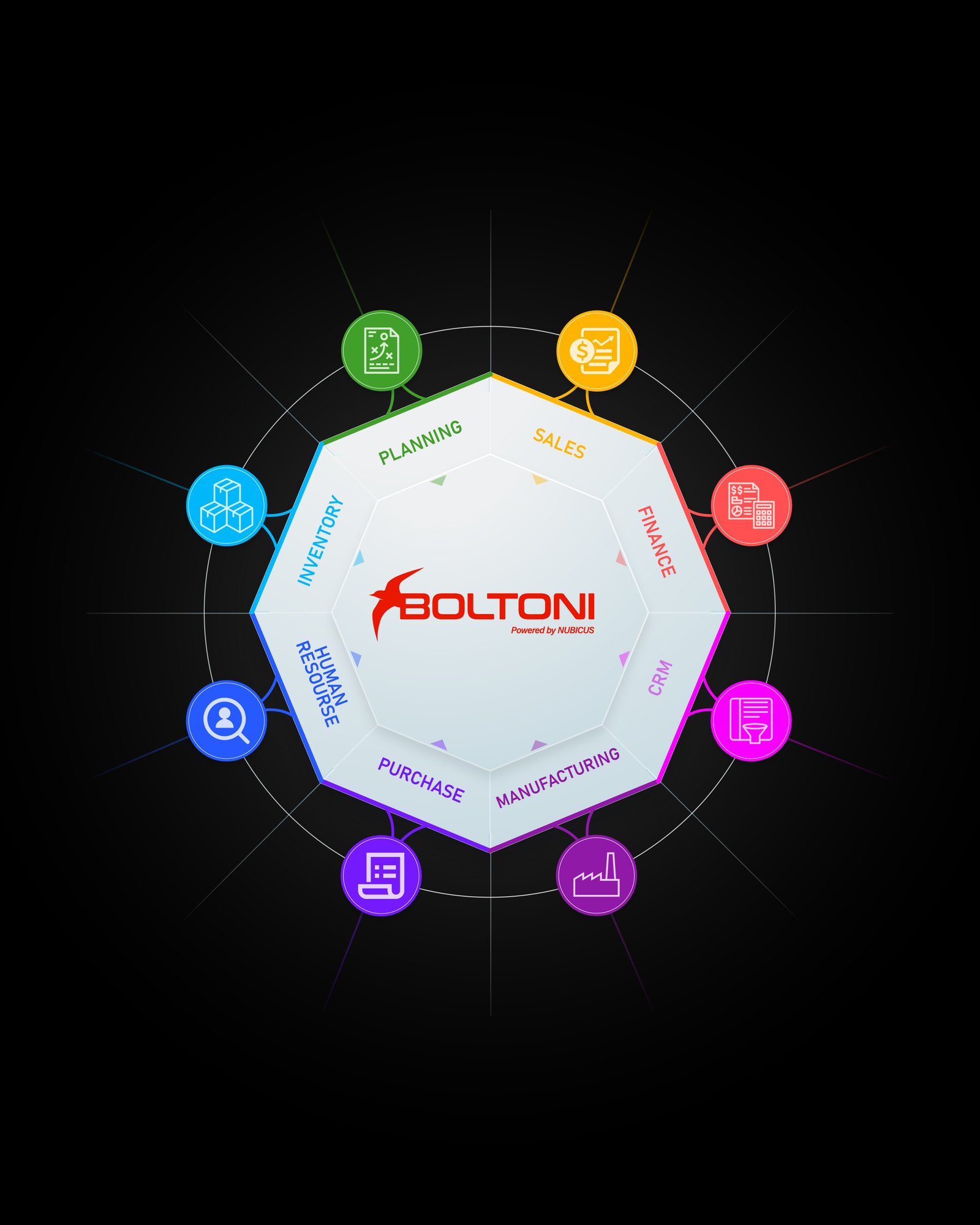 Boltoni is an innovative ERP and CRM platform developed by Nubicus Company to help businesses streamline operations, improve productivity, and achieve complete digital transformation. Designed with modern technology and industry-focused solutions, Boltoni enables organizations to manage their entire business from a single, powerful platform. Our mission is to simplify complex business processes by providing smart, scalable, and secure enterprise solutions. Boltoni in-tegrates key functions such as project management, finance, HR, sales, inventory, and customer relationship management into one seamless ecosystem. Built for startups, SMEs, and large enterprises, Boltoni offers customizable modules tailored to different industries, including construction, healthcare, logistics, retail, and service-based businesses. With cloud-enabled architecture, high security, and multi-user access control, Boltoni ensures your business data remains accessible, organized, and protected. At Boltoni, we believe technology should empower businesses to grow faster and operate smarter. Our platform is designed not just as software, but as a complete business management solution that supports efficiency, transparency, and long-term success.